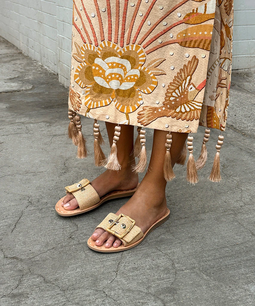 Understated, yet elevated. We’ve taken our most minimal slide silhouette and dressed it up with an oversized buckle for the perfect retro-chic touch. Be sure to add these to your beach bag before your next vacay.