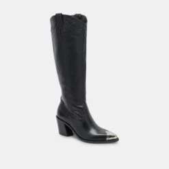 The luxe way to wear the western trend. KAMRYN shows off subtle stitching details and a contrasting toe accent, lending an authentic touch to this sophisticated knee-high cowboy boot.