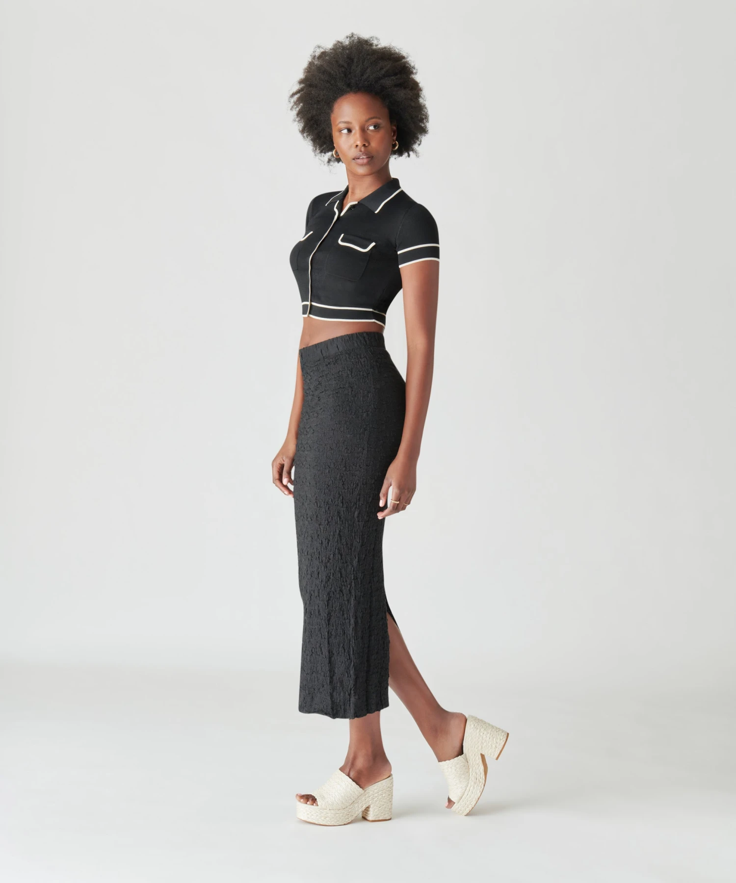 Our chunky platform mule channels her natural side. ELORA is the 90s platform you remember, modernized in a beachy, raffia-wrapped update. We can’t wait to pair her with flowy midi skirts and chic coverups by the pool.