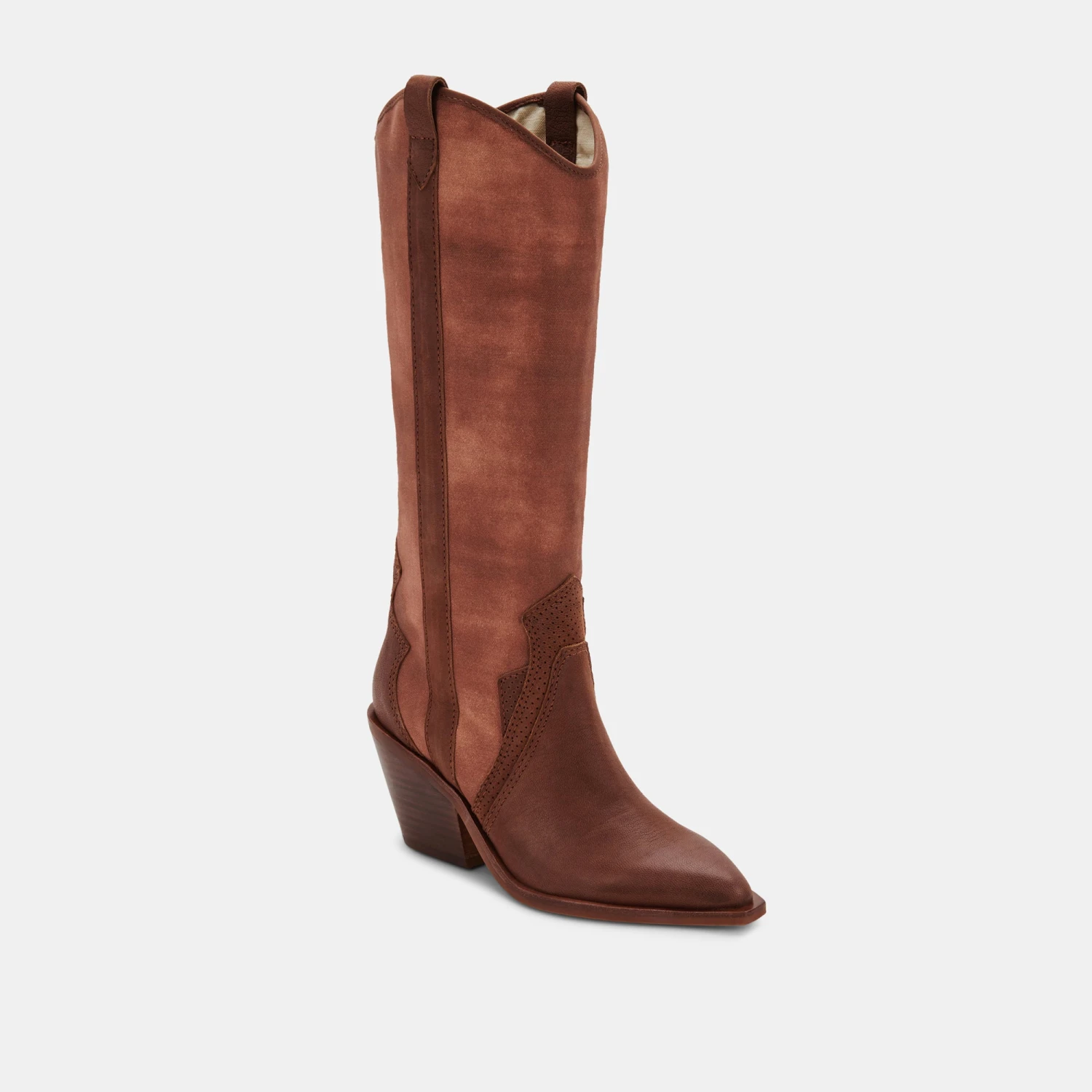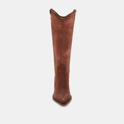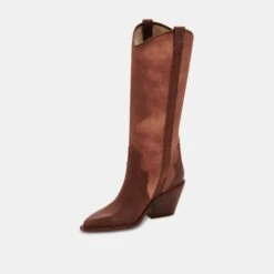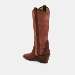 So much character. NAVENE is our tall western-inspired boot in two versatile hues—chocolate and vanilla—to pair with just about anything. Pull on these statement boots with a romantic prairie dress this season to master the trend.